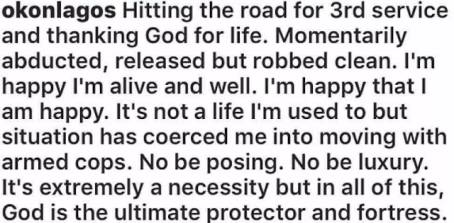 The comic star who is currently in Abuja said from now on, he will not step out without his security aides as it has now become a necessity.