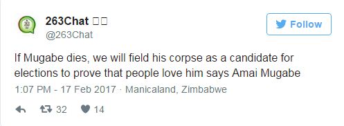 Grace who spoke in Shona, a native language reportedly said: “If Mugabe dies, we will field his corpse as a candidate for elections to prove that people love him.”