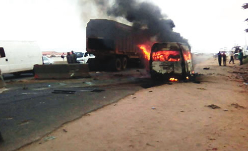 According to eyewitnesses, the disaster happened when a truck heading to Lagos veered to the other side of the road while trying to avoid hitting another vehicle.